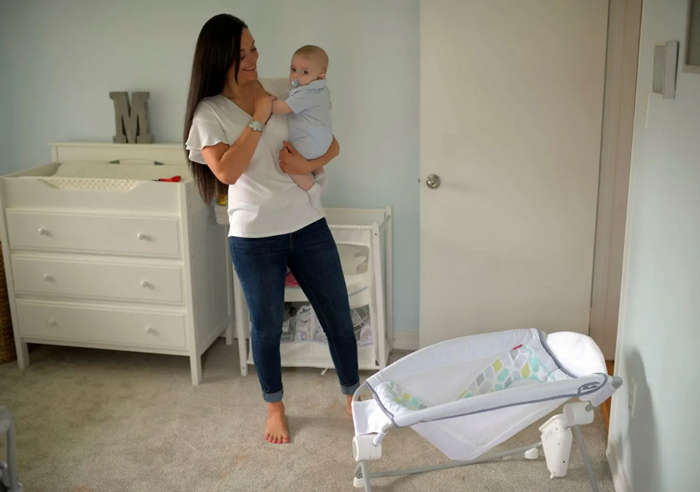 Miana Marie from Virginia, US, had used the Fisher-Price Rock ‘n Play sleeper for her son Mason until the recall. Photo: John McDonnell/The Washington Post.