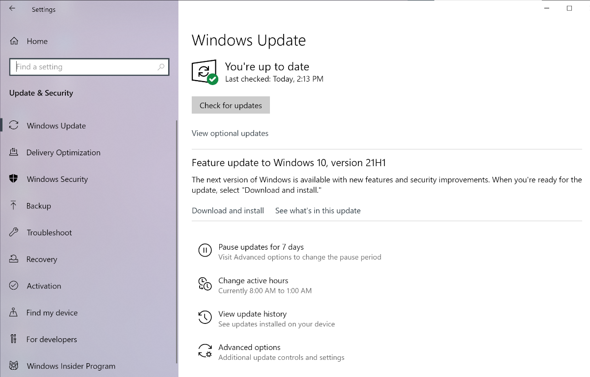 Open your Start menu and go to Settings > Update & Security > Windows Update.