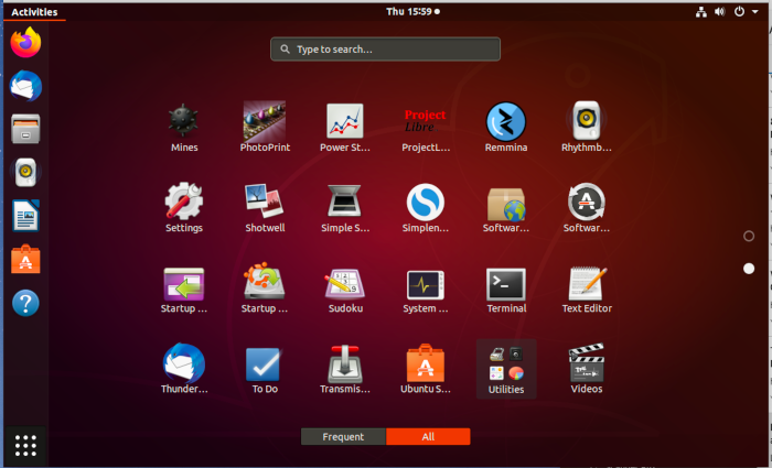 Ubuntu comes with a handful of apps by default, such as the Firefox web browser, Libre Office, and Rhythm box music player, to name a few.