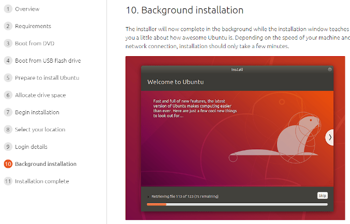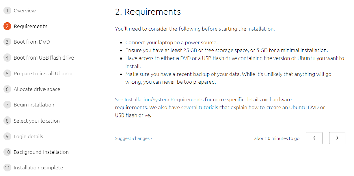 Once you click download, you’ll be prompted to donate to various Ubuntu and community projects. You don’t have to do this. Instead, click “help on installing” at the top of the page to load the guide.