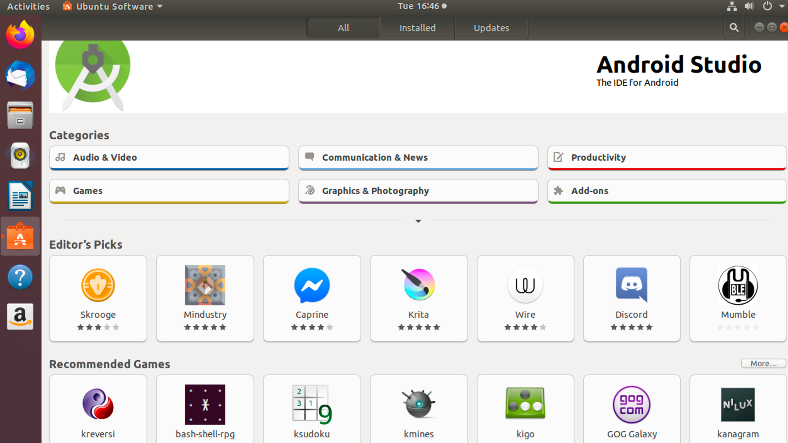 To install new apps, click the Ubuntu software icon on the left-hand side. This is an app-store, of sorts, where you’ll get most of your Ubuntu programs and software.