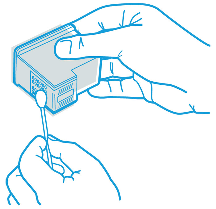 If your printer’s self-clean function can’t fix the heads, the user manual might tell you to buy a new cartridge. If this is the case, you may as well try cleaning them yourself first. Remove the problem ink cartridges from the printer and gently wipe the heads with a cotton swab, then place them back in and try the self-clean function again.Â