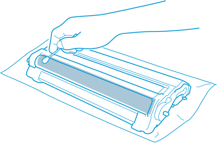 When cleaning a drum unit, use a cotton swab unless directed otherwise by the product manual. Any scratch to the delicate surface causes permanent damage, so avoid the harsh fibres of paper towel or tissues. And never touch the drum surface with your skin.