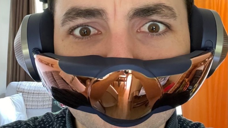The air purifier visor attaches to the headphones magnetically, allowing you to quickly remove it. With the visor removed, the headphones continue to work as normal. The visor is adjustable, allowing you to move it up and down as well as in and out, but it took us a few goes to achieve the best fit. It’s also incredibly easy to accidentally knock the visor off.