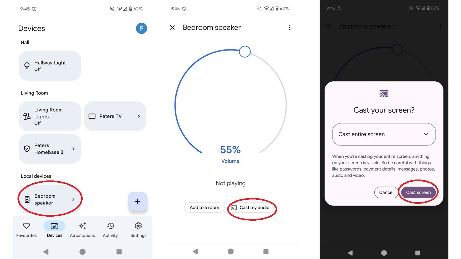 Most smartphones can also cast audio directly via the default smart home app that’s included with the operating system. This will vary depending on the manufacturer and devices, but here’s an example of how to cast audio: