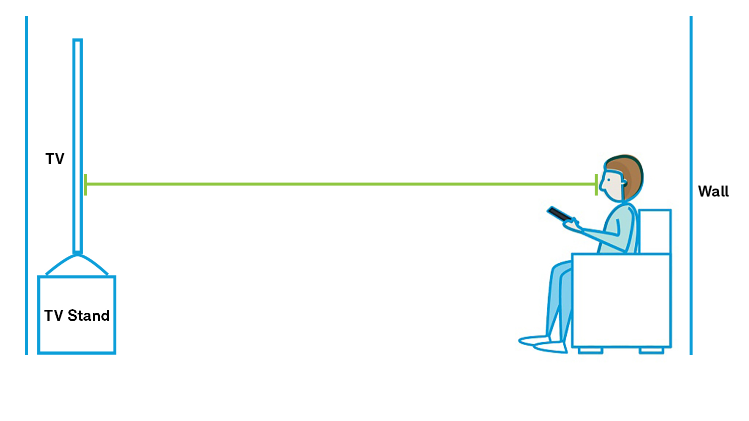 But the most important measurement is the distance between your seated viewing position and the TV screen. This will be smaller than the full length of the room.