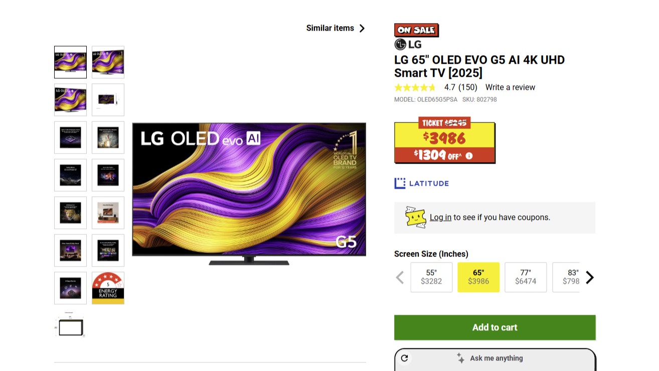The premium OLED TVs come in a few iterations and several sizes from the 55-inch OLED55B5 up to $10,000 for the 83-inch OLED83G5. The most important thing to look for to find the right LG OLED TV for your budget is a combination of the number 5 and letters G, C, or B.