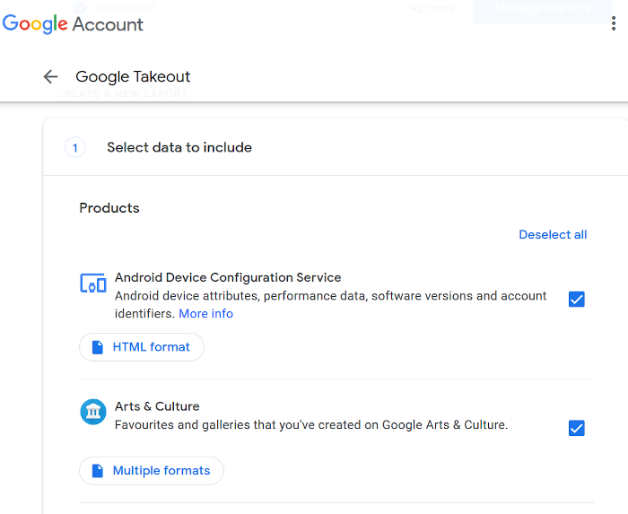 Note: if yours is a business Google account, you might not have permission to export any data via Takeout. Ask your IT department if this is the case.