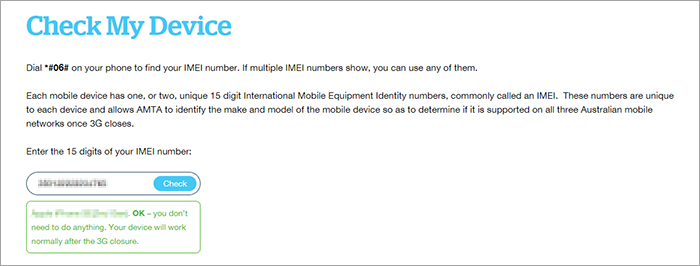 You can also visit www.3gclosure.com.au, click on “Check your mobile phone” and enter your phone’s 15-digit IMEI number to get advice on your phone.
