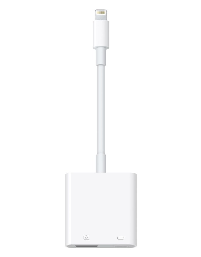 This adapter gives you a Lightning connector for the iPad, a USB 3 port for external devices and a Lightning connector-shaped power input for providing power via a Lightning cable connected to a USB wall charger. You’ll need this to power drives (which may include some USB Flash drives as well as portable SSDs) that draw too much power for the iPad’s Lightning connector.