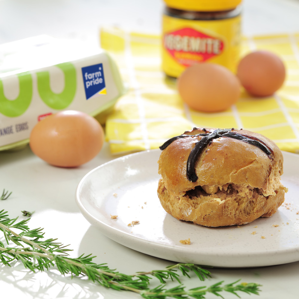 Vegemite and cheese hot cross buns. Image credit: Vegemite.