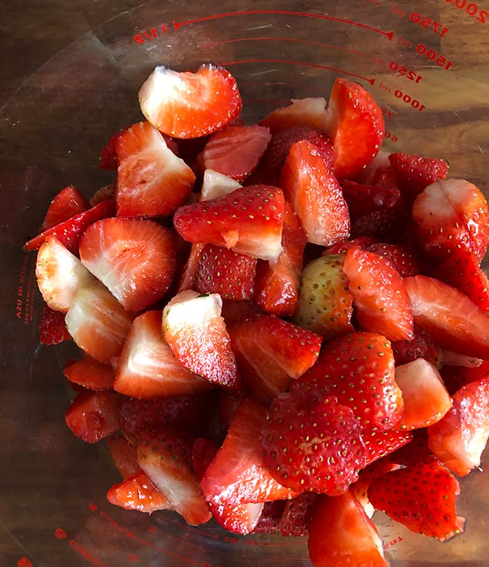 - 500g slightly underripe or just-ripe strawberries, hulled and sliced (room temperature)
