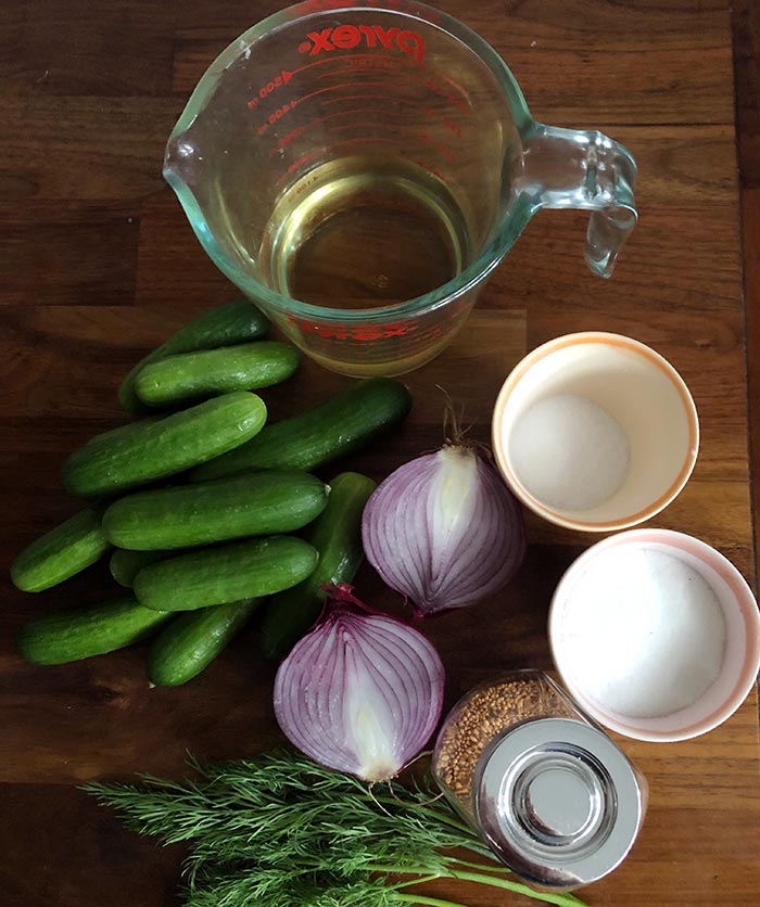 - Put dill, salt, mustard seeds, sugar, vinegar and water in a saucepan and bring to the boil. Stir until the sugar and salt dissolve. Allow to cool.