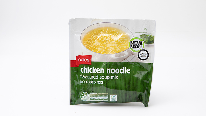 - Coles Chicken Noodle Flavoured Soup Mix (91%)