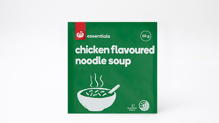 - Woolworths Essentials Chicken Flavoured Noodle Soup