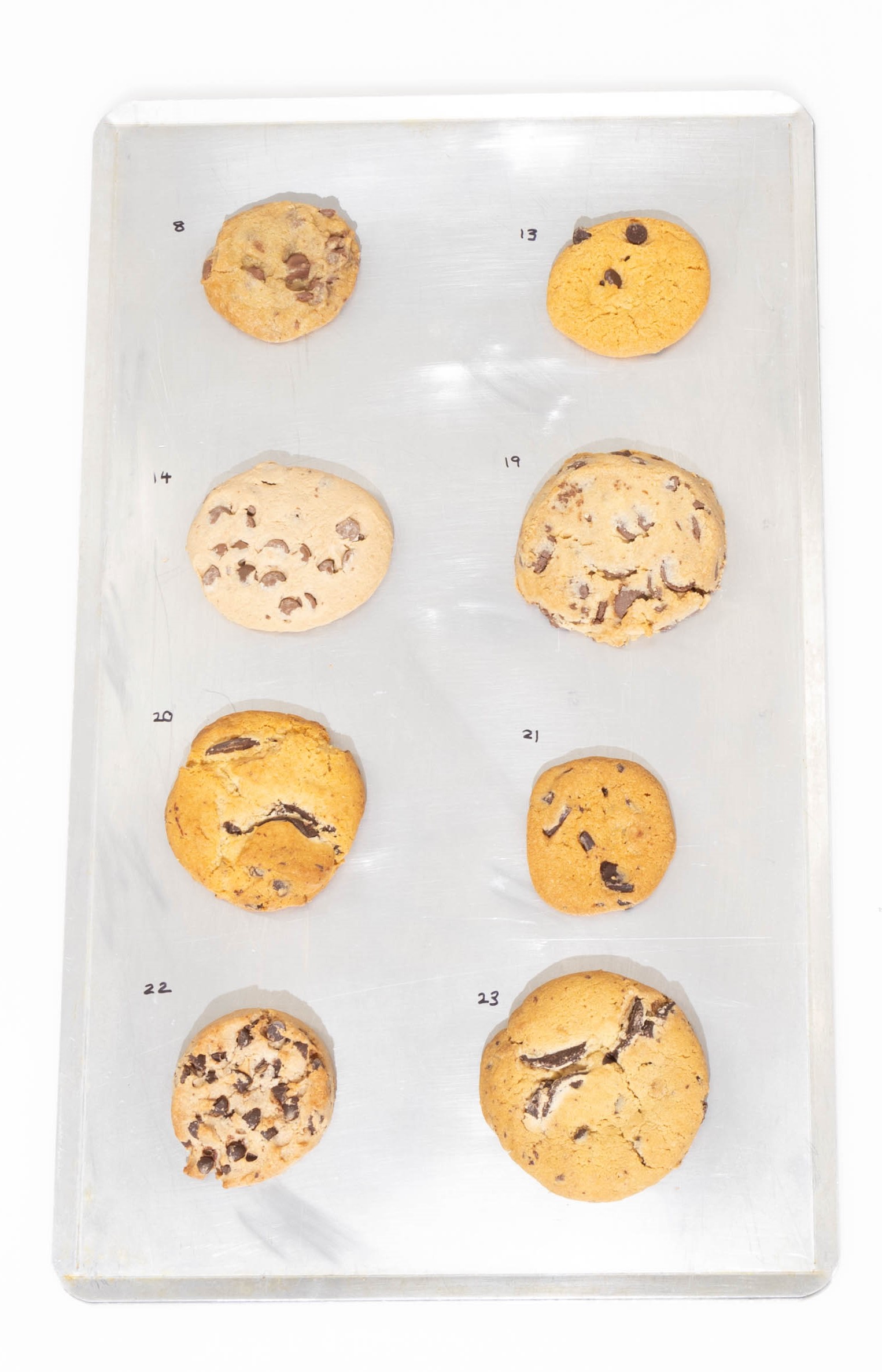 “Slightly rustic appearance, nice thickness, lots of chocolate chips. Nice soft crunch. Lots of dark chocolate. Not too sweet, nice biscuit.” “Uniform, visually appealing cookie. Unfortunately it has poor mouthfeel due to fat lining the palate.”