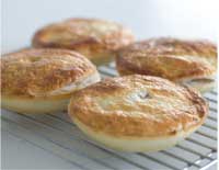 - Place pies onto hot tray. Bake for 20-25 minutes or until the pastry is golden.