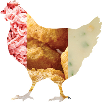 Nuggets from the supermarket freezer are made from machine-formed chicken