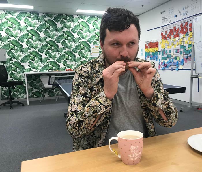 And just for fun, we put our senior media advisor JB through a blind Tim Tam Slam challenge. We gave him one of each biscuit and asked him to chomp the ends off and slurp his tea through them. Strangely enough, he was more than happy to oblige.