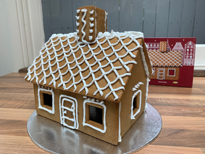 The instructions were straightforward, and the house slotted nicely into the grooves of the plastic base board. But the icing took longer to set than for the other kits, so I had to hold everything together for longer so that it didn’t fall apart. But, once assembled, it was structurally sound.Â