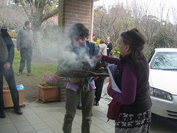 Elspeth’s son holds the ceremonial smoking bowl before his father’s funeral in the Blue Mountains.