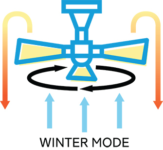In short, using a ceiling fan in reverse mode – in combination with a heater –significantly reduces the power you need to maintain a comfortable room temperature, thereby lowering your heating bill.