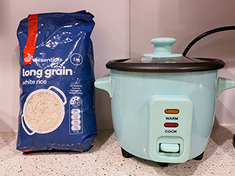 If space is a premium and you only want to cook small amounts of rice at a time, the Kmart mini rice cooker is an inexpensive option that will do the job.