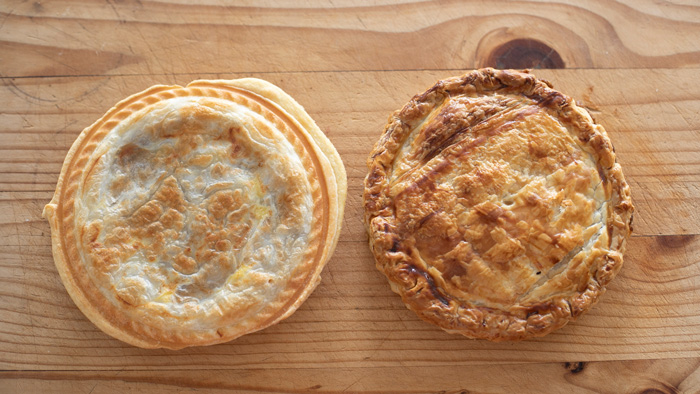 “The pie that comes out of the oven is much more golden, flaky and evenly cooked,” says Fiona. “The one from the pie maker is pale golden and slightly flat.”