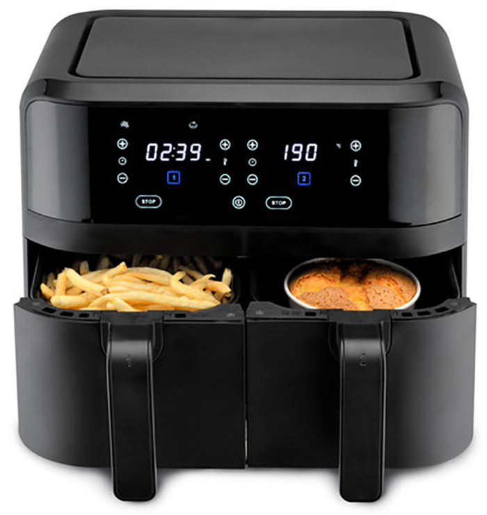 In a standard single-drawer air fryer, you can only cook one type of food at once. This can be limiting, leaving you at a loss if you have a hankering for some perfectly crisp chips alongside your air-fried steak or salmon fillet, for example.