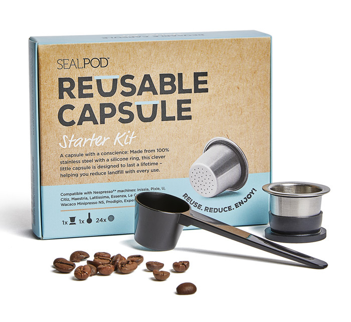 There are several brands of refillable stainless steel pods now available that are compatible with various machines, including Nespresso Original and Vertuo machines, Aldi Espressi K-fee machines, Caffitaly and Dolce Gusto. They are available from online-only retailers such as Podstar and Crema Joe (which distributes SealPod, WayCap and Bluecup reusable coffee pods).