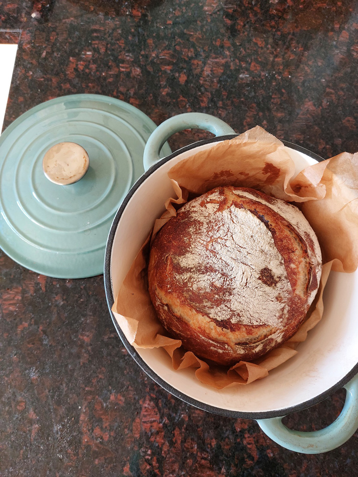 Not only was I happy with my loaf, I also quite enjoyed how aesthetically pleasing my bread looked nestled in the pretty green pot on my benchtop.
