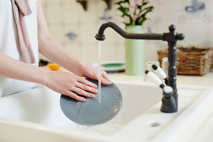 “By all means, scrape your dishes before putting them in the dishwasher, but there’s no need to rinse – it won’t make your dishes any cleaner and it’ll just use more water,” says Ashley.