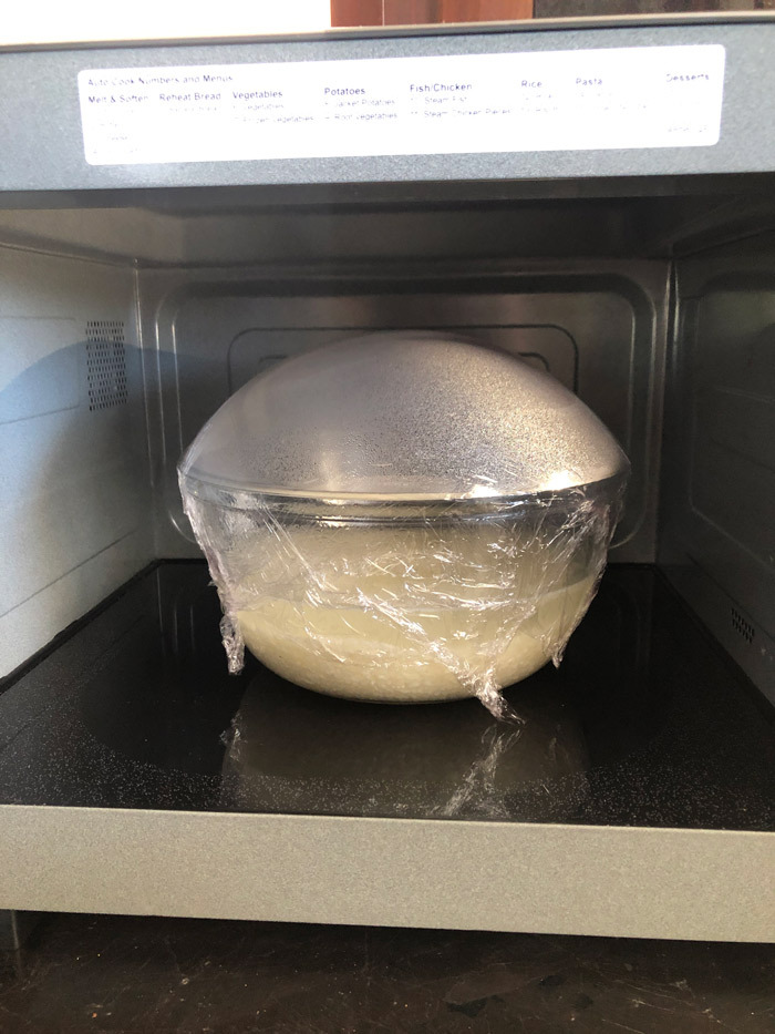 Wrap it in damp paper towel or tea towel and pop it in the microwave for 10 to 30 seconds. (The timing will depend on your microwave’s power and the size and thickness of the bread.)