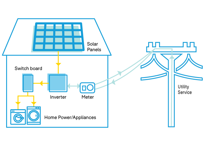 Most homes with solar are also connected to the main electricity grid. In this situation, the inverter has to provide anti-islanding protection. During a blackout, the grid – and any engineers working on the lines – must be protected from “islands” of electricity generation (such as your solar panels) pumping electricity unexpectedly into the lines.