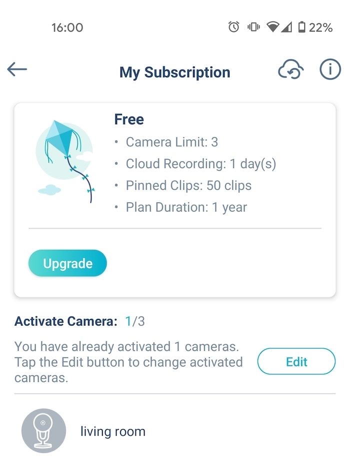 However, there’s a free one-year plan that retains up to one day’s worth of recordings, for up to three cameras. This plan shows up when you tap on “cloud” as the storage option within the settings. There’s no option to use both cloud and SD card, so you have to choose one or the other.