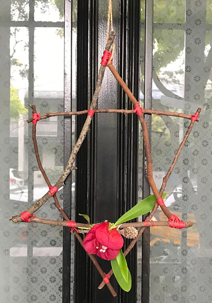 You can use branches, dried leaves and flowers to make circular or star-shaped wreaths to decorate your front door or hang around the home. Look for branches that have some bend in them and use twine, wool or embroidery thread to create a circular wreath shape or opt for an easier star shape. You could also do smaller versions to hang on the tree.