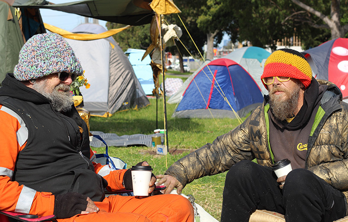 In the middle of Saint Georges Road in the suburb of Preston, around half a dozen people have been sleeping in tents for the week-long action. Protesters Shannon and Justin sit on camp chairs and share their thoughts behind setting up the site.Â