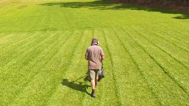 Lawn is prepared to short (30mm) and medium (70–100mm) lengths, and an area of grass has been left to grow long (300mm+).