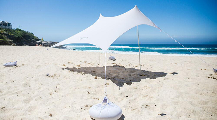 Imagine that a tent and an umbrella had a love child – that’s essentially what a cabana is. It’s a square-shaped shelter with four legs (which have sandbags to secure it to the ground), a central pole to stake into the sand and a roof. Judging by the number of them on Aussie shores in the past few summers, they’re a beach trend that’s now well established.
