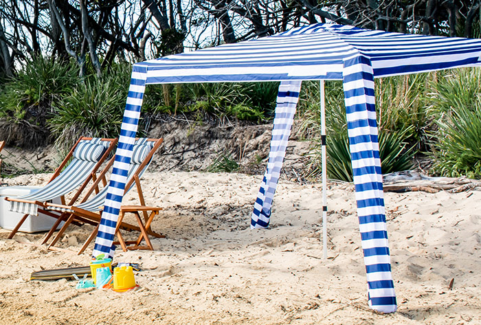 “Having portable or temporary structures on the beach gives you somewhere to retreat from direct UV radiation. Umbrellas, large tents, marquees and beach shelters are good options to create shade when other shade structures like trees or built shade structures might not be available,” says Sally.