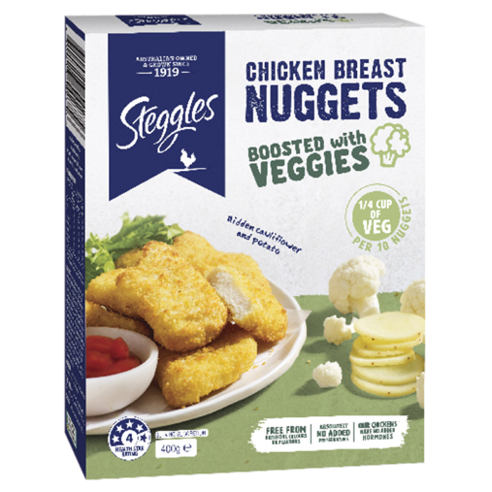 Steggles Chicken Nuggets Boosted with Veggies – for hiding veggies so well that we could barely find them.