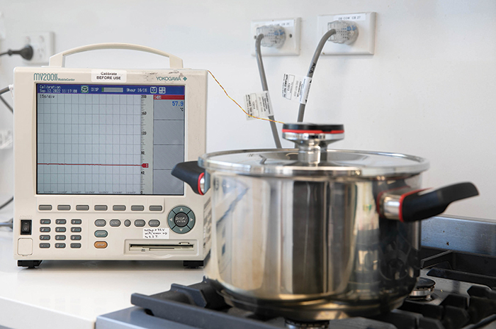Testing the Zega Digital cooking pot in the CHOICE kitchen labs.
